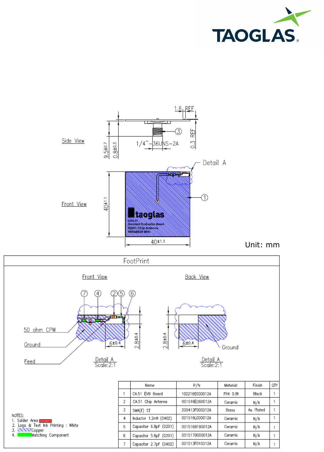 *Taoglas is able to provide CAD drawing file to customers for evaluation.