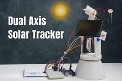 Build a dual axis solar tracker system using Arduino, LDR sensors & servo motors. Increase solar panel efficiency by 30-40%. Complete circuit diagram & code included.