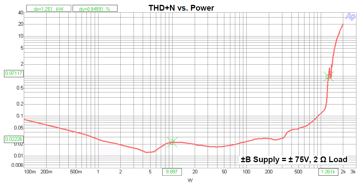 < 0.07% @ 1.7 kW (2 Ω, +/- 75 V)